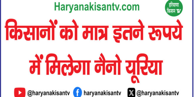रासायनिक उर्वरकों का इस्तेमाल कम करने के लिए प्रदेश सरकार किसानों को आधी कीमत पर नैनो यूरिया देगी। कृषि विभाग द्वारा पायलट प्रोजेक्ट के तौर पर जिला सिरसा में 7000 एकड़ पर नैनो यूरिया के प्रदर्शन प्लाट लगाने का लक्ष्य रखा है। योजना का लाभ लेने के लिए आवेदन की अंतिम तिथि 15 जनवरी 2024 है।