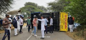 चालक के मुताबिक यह डी.ए.पी. कागदान गांव में एक दुकान पर जानी है। चालक ने बताया कि उसे इस हादसे में कोई चोट नहीं आई है।