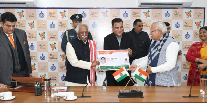 चंडीगढ़ के हरियाणा भवन में आयोजित कार्यक्रम में राज्यपाल श्री बंडारू दत्तात्रेय ने आयुष्मान योजना के तहत सरकारी कर्मचारियों के लिए कैशलेस स्वास्थ्य सुविधा का शुभारंभ किया। इस अवसर पर मुख्यमंत्री श्री मनोहर लाल भी उपस्थित रहे। राज्यपाल और मुख्यमंत्री ने पहला आयुष्मान कैशलेस कार्ड स्वास्थ्य विभाग में कार्यरत हितग्राही डॉक्टर राहुल गर्ग को सौंपा। डॉक्टर गर्ग पंचकुला में आयुष्मान विभाग में कार्यरत हैं। डॉक्टर राहुल गर्ग का आयुष्मान कैशलेस पॉलिसी बनाने में भी योगदान रहा।