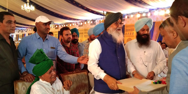 पूर्व मुख्यमंत्री प्रकाश सिंह बादल किसी तरहां की भेंट स्वीकार करते हुए ।
