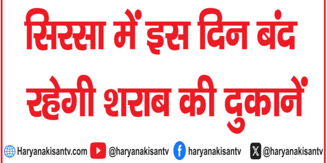 जिलाधीश पार्थ गुप्ता ने आगामी 22 जनवरी को उत्तर प्रदेश के अयोध्या में राम मंदिर के प्राण प्रतिष्ठा के मद्देनजर जिला में ड्राई डे की घोषणा की है। जिलाधीश ने पंजाब आबकारी एक्ट 1914 की धारा 54 की प्रदत्त: शक्तियों का प्रयोग करते हुए ये आदेश जारी किए हैं। उन्होंने उप आबकारी एवं कराधान आयुक्त (आबकारी) सिरसा को आदेशों की कड़ाई से पालना के निर्देश दिए हैं।